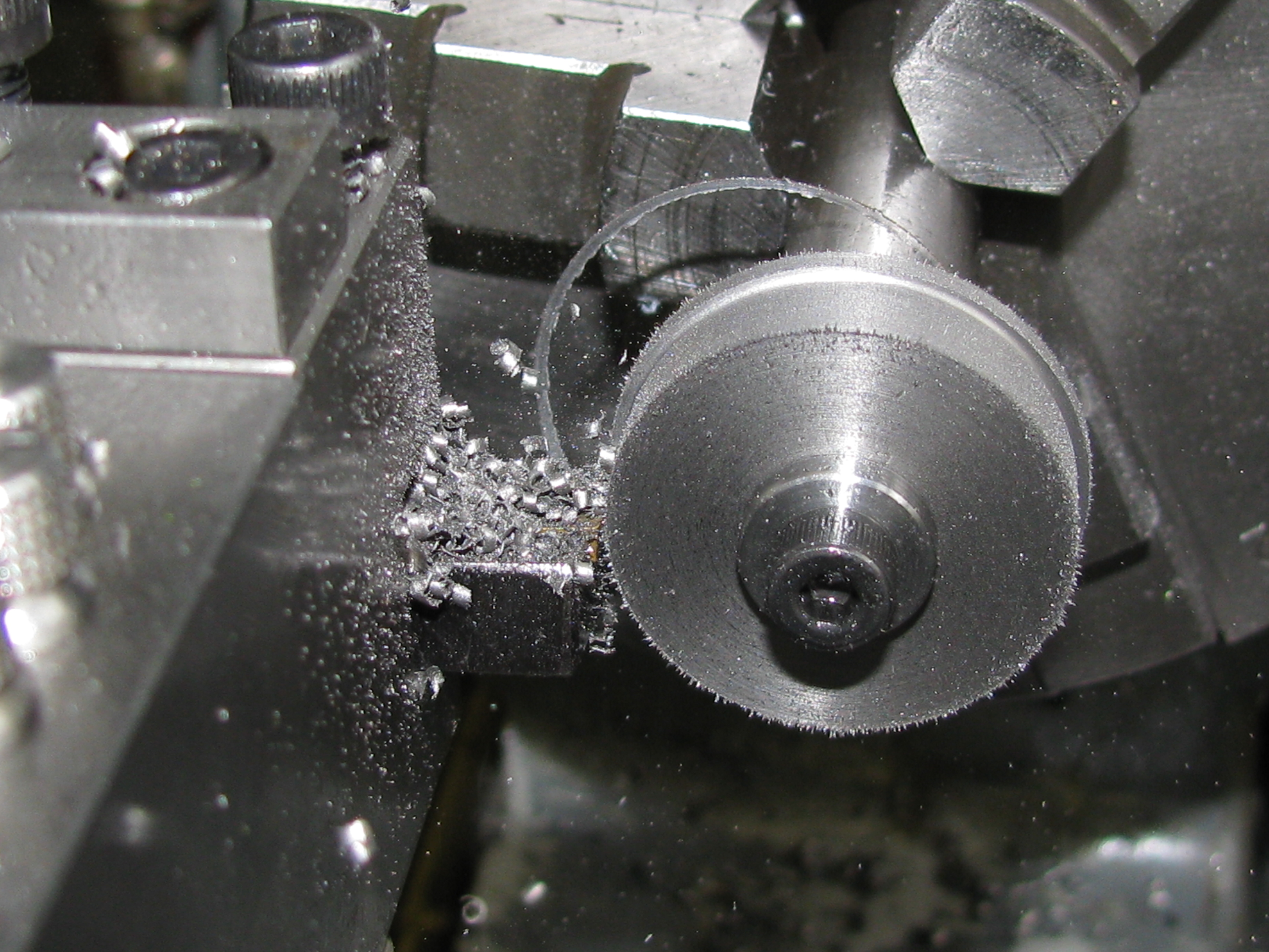 Today I started by roughing out the Idler Mounting Stud from a cap-head bolt. Unusually, I tried a carbide tool, at about 150 ft/min. It did give a good finish. (¾ hour)