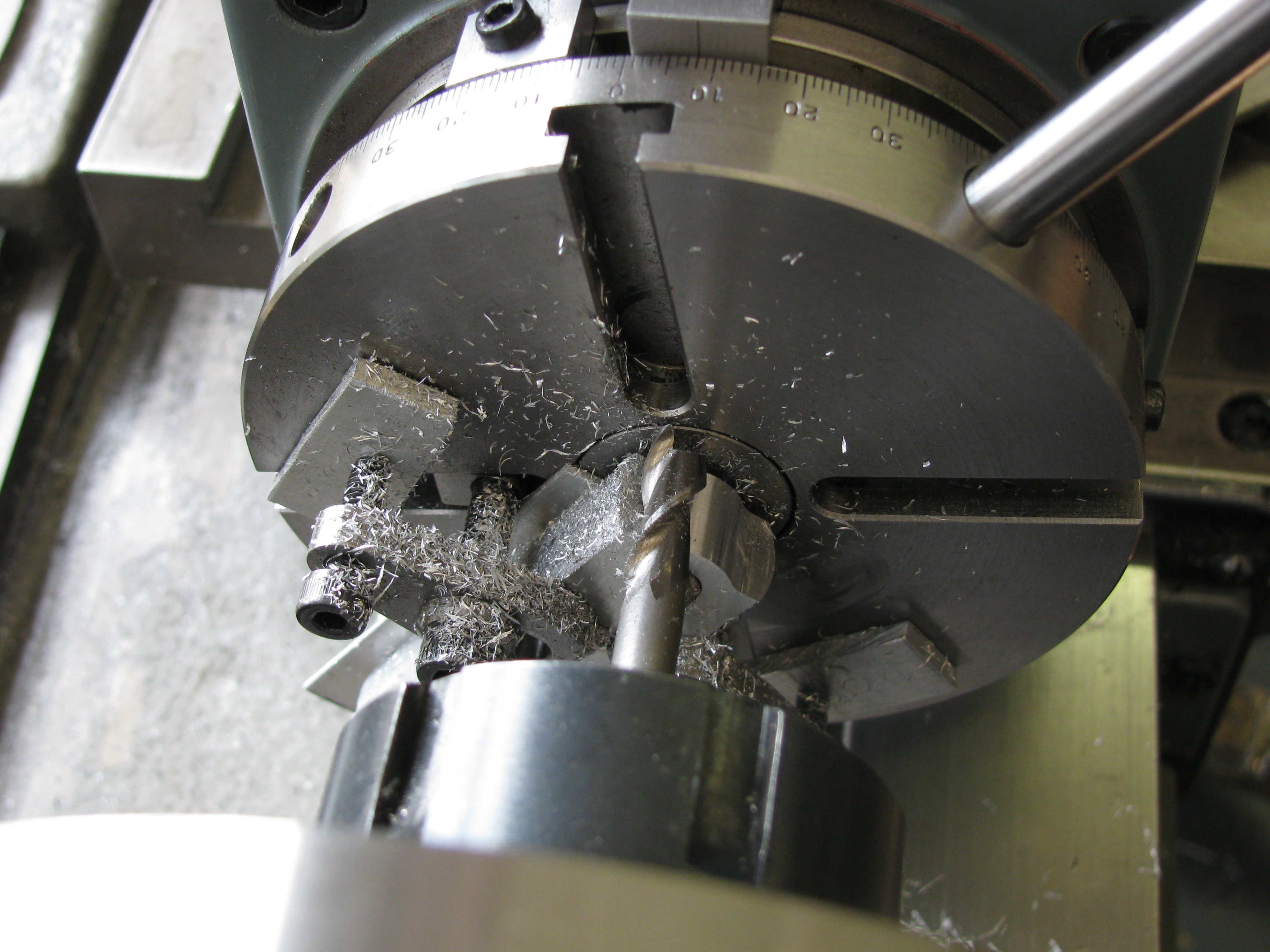Very useful for any milling work is an LED edge-finder. I have one, but with an aluminium body that is not concentric with the probe. I would not recommend this type. As I knew I would want it repeatedly for this job I set it running true in the Griptru chuck and put the milling cutter in the collet chuck so swapping between the two was simply a matter of swapping chucks. This takes little more time than changing ER collets. Adding and subtracting dial readings, and remembering backlash directions requires concentration, and while DRO's would be nice, it does keep a part of the mind exercised. The results were pretty accurate, anyway.