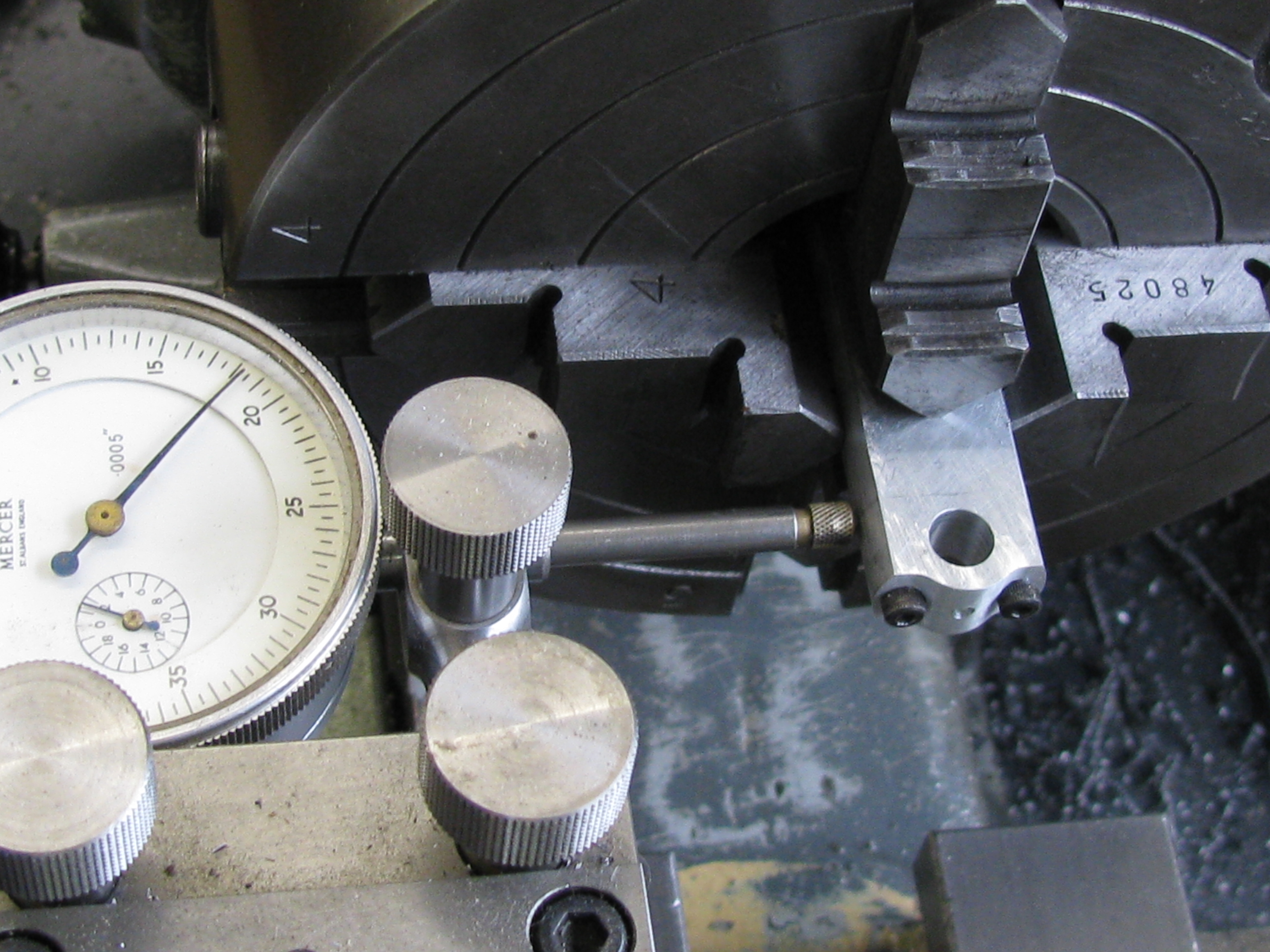 Looking for a way to support the little end for re-boring, I decided I could use a plate with a finger to fit between the lateral locating pieces and behind the little end. (2¼ hours)
