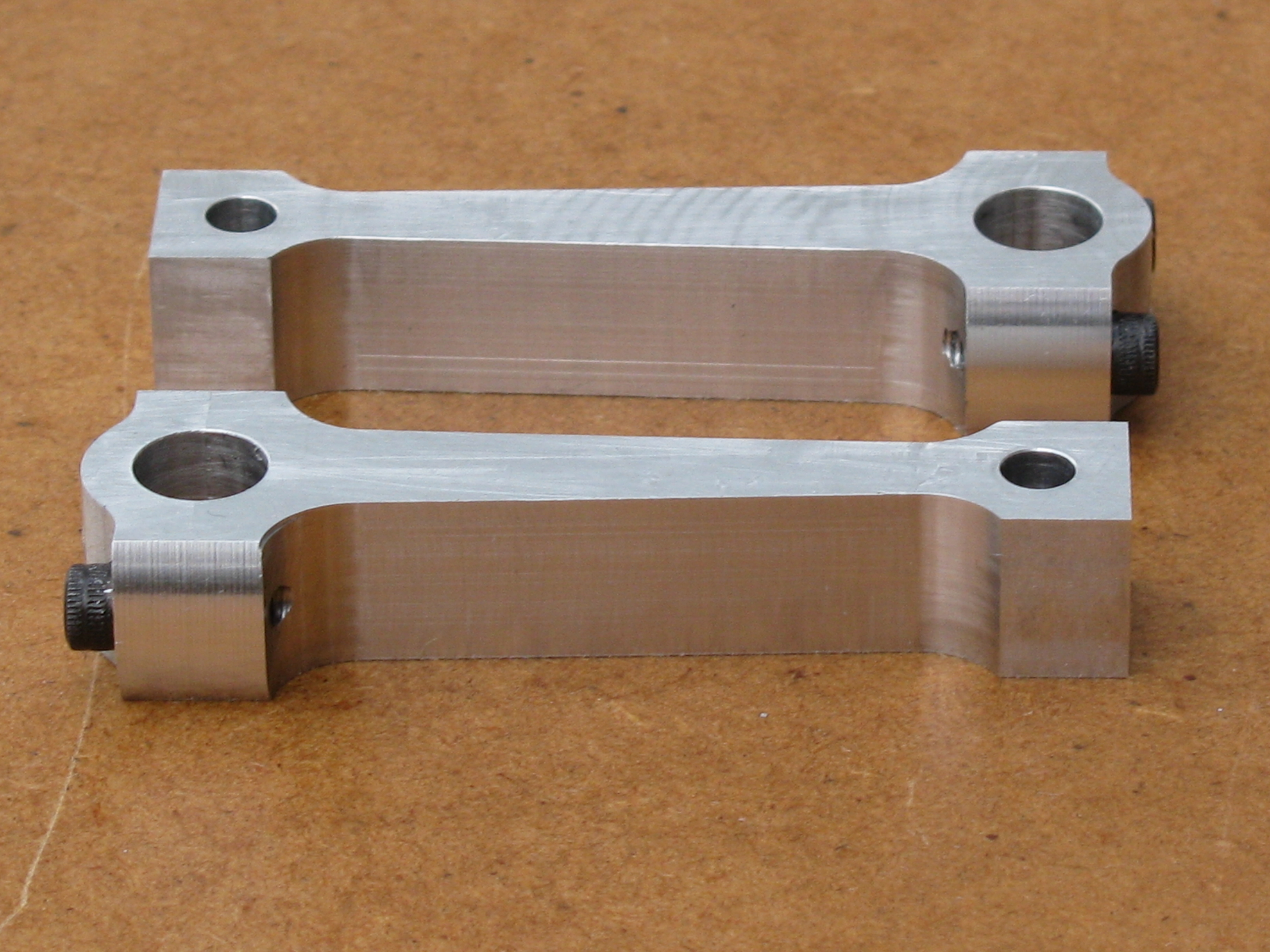 I decided I was right to level the rod for each operation to ensure accuracy. If the range of movement allowed by the bolts makes any difference it will be to the taper cuts, which may result in slight variation of the thickness at the neck, adjacent to the little-end. By pushing down firmly on the rod while tightening the bolts for taper cuts, the slack should be taken up evenly.