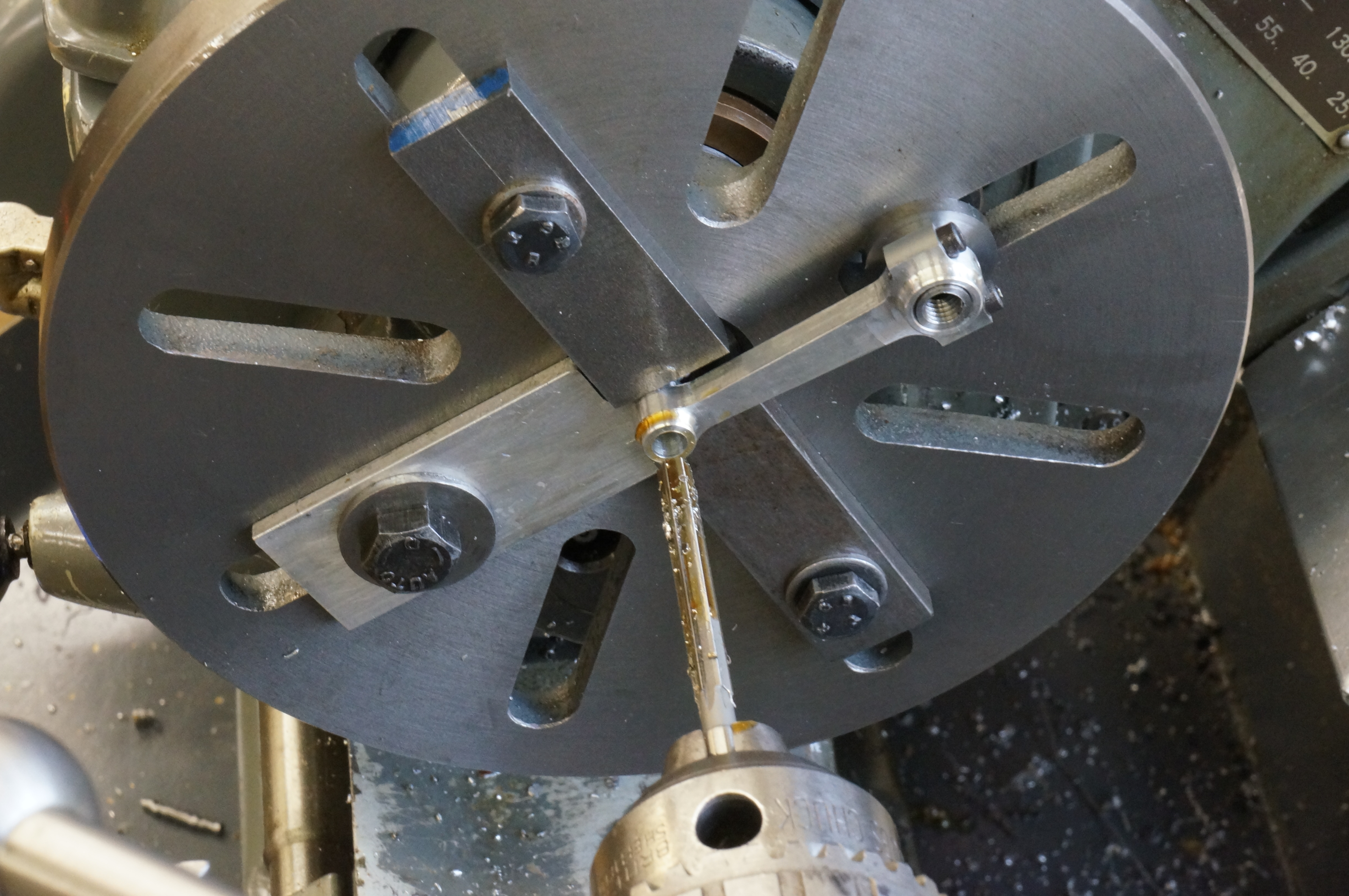 In making a shouldered pin to mount by the big end, I should have tapped the ¼ BSF hole through it first, as once turned to size it proved difficult to grip tightly enough to resist the torque needed for tapping. Although it slipped a couple of times in the chuck, the diameter fortunately remained on size.