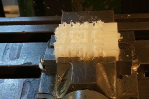 I continued hand trimming the nylon spiders. Differences in surface finish taught me that I should not climb-mill nylon. I milled one spider to final thickness and tidied it up. The result is not bad. (time not recorded)